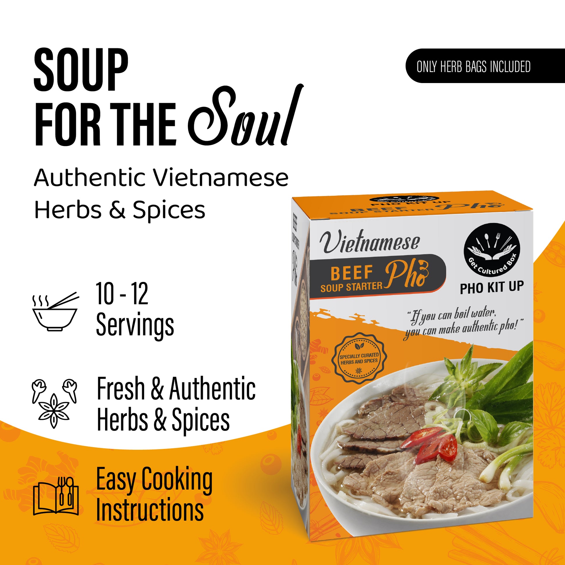 Already have access to phở basics (rice noodles, fish sauce, etc.)? Check out our pho soup starters: the key to the perfect pho broth. It will save you time and effort in getting the perfect blend of spices right, every time!