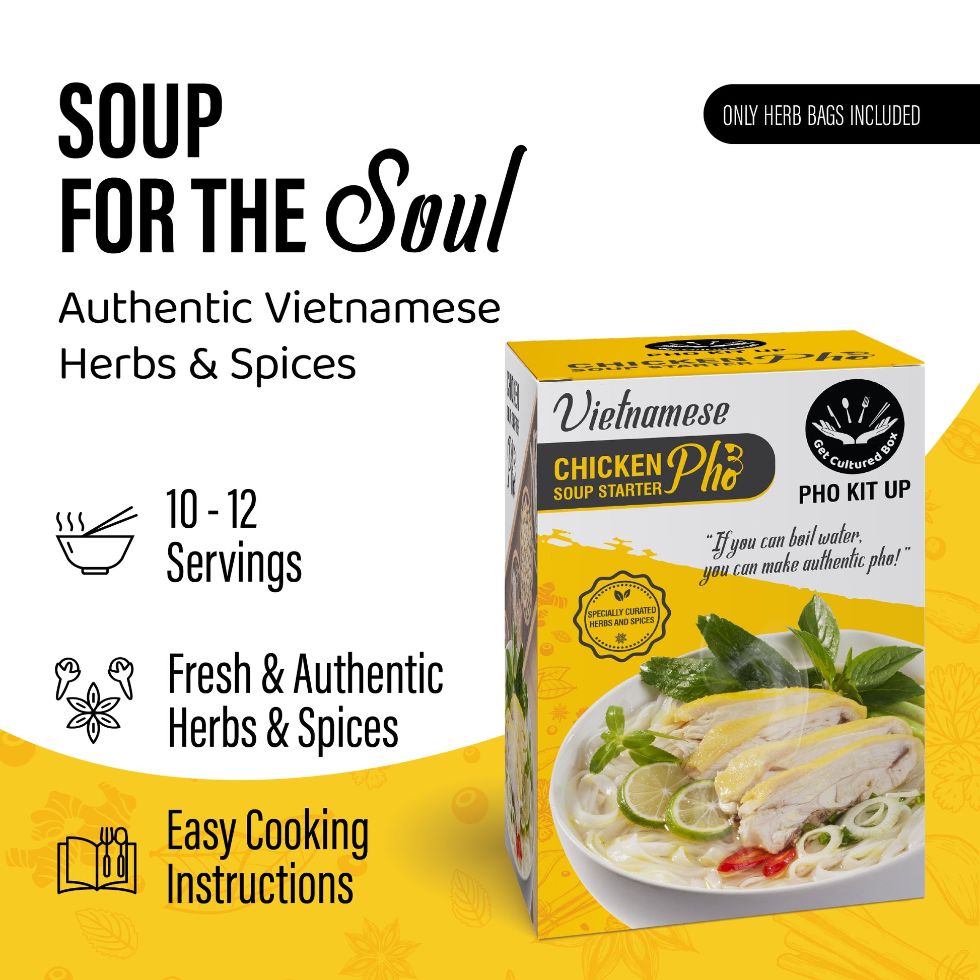 Already have access to phở basics (rice noodles, fish sauce, etc.)? Check out our pho soup starters: the key to the perfect pho broth. It will save you time and effort in getting the perfect blend of spices right, every time!